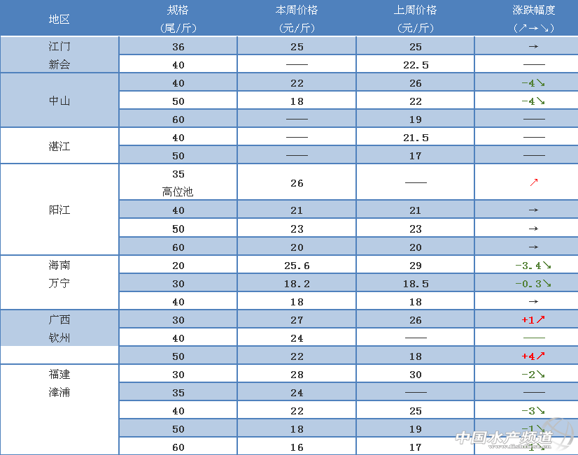 本周開始我國持續(xù)大范圍降溫天氣,多地最低氣溫或跌破冰點(diǎn),北方養(yǎng)殖已接近尾聲,山東工廠化養(yǎng)殖率先出蝦,行情不錯(cuò)。海南地區(qū)養(yǎng)殖狀況欠佳,市場(chǎng)銷量不穩(wěn)定,國慶節(jié)期間北方外塘蝦集中出售導(dǎo)致價(jià)格持續(xù)低位,外塘蝦銷售尾期,需求增加有限,漲價(jià)動(dòng)力不足。