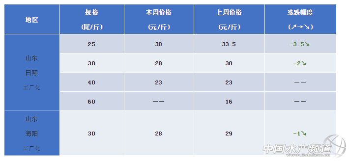 山東海陽:今日蝦價(工廠化)30頭28元/斤。夏季蝦基本結束,存量不多,到12月份再開始投苗。