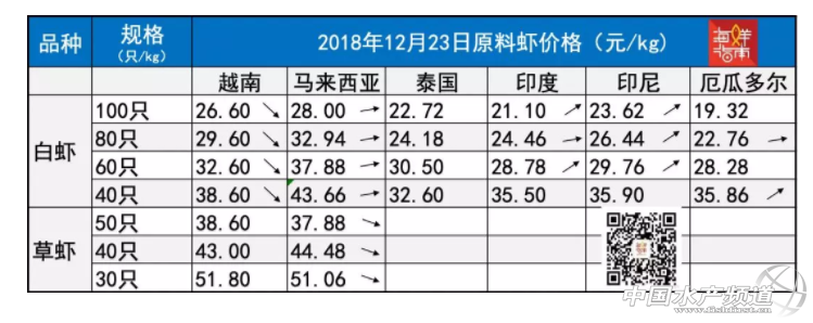 12月23日,除了越南蝦價繼續走低,厄瓜多爾、馬來西亞、印度、印尼等其他產區原料價格都有不同幅度上漲,泰國蝦價暫時平穩。