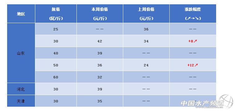 馬來西亞:100只/kg、80只/kg漲幅均在0.8元左右,60只/kg、40只/kg漲幅均在1.6元左右。(來源:海鮮指南)