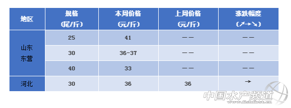 山東東營:今日蝦價25頭41元/斤,30頭36-37元/斤,40頭33元/斤。
