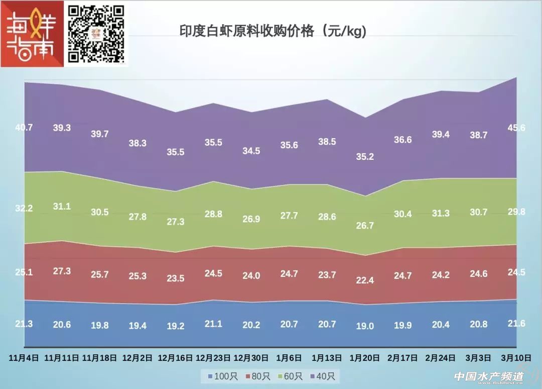 3月10日,印度40白蝦收購價漲幅高達6.9元/kg(來源:海鮮指南)