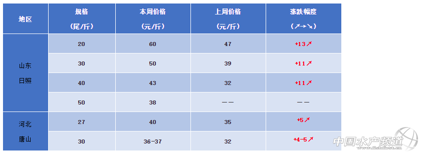 河北唐山:今日蝦價27-28條40元/斤,30條36-37元/斤,對比上周同期,唐山地區(qū)蝦價格上漲了5元/斤,行情看好!