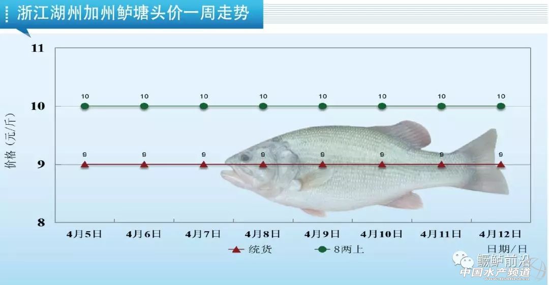 佛山8兩上加州鱸今天報價10.7元/斤左右,相比上周價格上漲了0.4-0.9元/斤;9兩上報價11元/斤,上漲了1元/斤,實際成交價看魚頭大小及8兩上規格比例而定。近期市場對大規格魚需求量較大,目前鱸魚正值產卵季,養戶出魚意愿不大,魚價有所上漲。