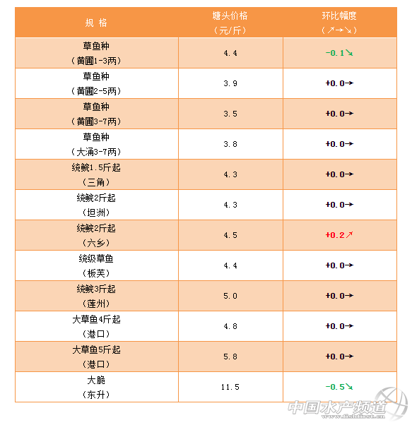 【關(guān)鍵字】:草魚(yú)  塘頭價(jià)  市場(chǎng)行情  水產(chǎn)養(yǎng)殖