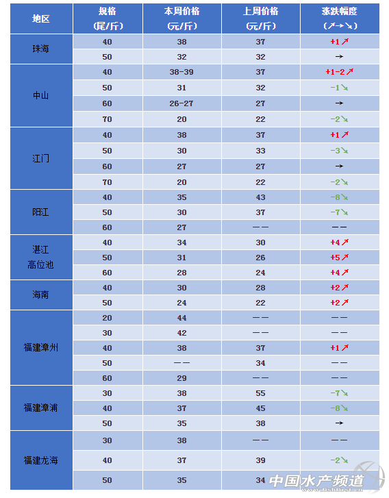 本周中山、珠海和江門(mén)地區(qū)40條蝦價(jià)格穩(wěn)中有漲,漲幅1-2元/斤,報(bào)價(jià)員表示近期中小蝦上市集中,大蝦貨源吃緊,價(jià)格自然上漲,而中小蝦中混有較多病蝦,導(dǎo)致小蝦價(jià)格下滑。江門(mén)地區(qū)價(jià)格下跌最為明顯,40條蝦報(bào)價(jià)只有35元/斤,當(dāng)?shù)貥I(yè)務(wù)員表示近期陽(yáng)江地區(qū)蝦偷死明顯,發(fā)病率達(dá)到6成,而且以小規(guī)格蝦上市較多。湛江、海南地區(qū)蝦價(jià)迎來(lái)上漲,且漲幅較大,行情看好!