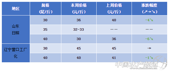 山東日照:今日蝦價(jià)30頭36元/斤,35條33元/斤,40條30元/斤。本周日照地區(qū)蝦價(jià)持續(xù)下跌,由于價(jià)格下跌,養(yǎng)殖戶(hù)更集中出蝦,造成惡性循環(huán)。