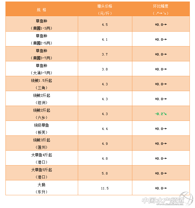 【關鍵字】:草魚  塘頭價  市場行情  水產養(yǎng)殖