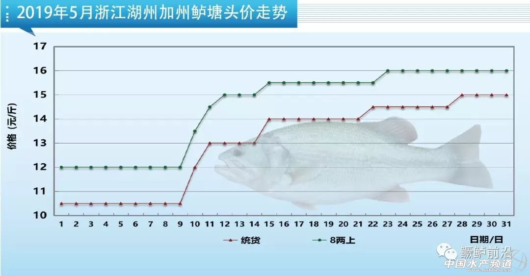 湖州本地存塘舊魚已經(jīng)很少,養(yǎng)戶多出統(tǒng)貨。今天8兩上報(bào)價(jià)15.5-16元/斤,相比月初價(jià)格12元/斤上漲了3.5-4元/斤,統(tǒng)貨報(bào)價(jià)14-15元/斤,相比月初價(jià)格10-10.5元/斤上漲了4-4.5元/斤。隨著當(dāng)?shù)卮骠~逐漸減少,當(dāng)?shù)亓魍ㄉ潭嗟街苓厖墙貐^(qū)收魚。
