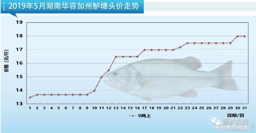 受存塘大魚緊缺影響,本月武漢魚價(jià)漲幅喜人,今天9兩上鱸魚報(bào)價(jià)17.5元/斤左右,相比月初價(jià)格13.5-14元/斤上漲了3.5-4元/斤。現(xiàn)在本地出魚量少,流通商多到周邊地區(qū)收魚。