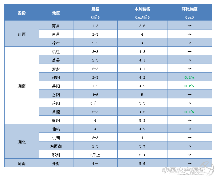 江蘇:本周江蘇地區的草魚行情暫時沒有太大變化,塘頭價基本維持上周水平。有徐州養殖戶表示,豬肉價格上漲之后雞鴨肉價格上漲可能性比較大,魚價上漲可能還是有點難。