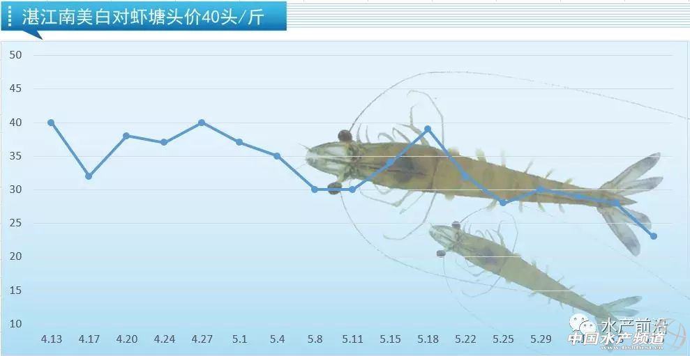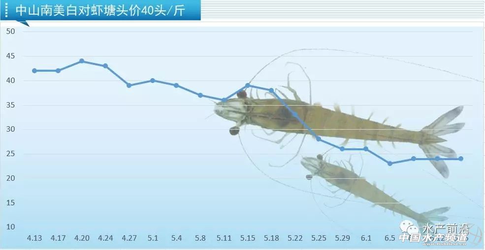 中山:今日蝦價40條24元/斤,50條20元/斤,60條17元/斤。受雨水天氣偏多的影響,不斷有病蝦上市,但本周蝦價波動不大