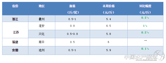 由于天氣的穩(wěn)定,最近華東地區(qū)的鯽魚發(fā)病也是比較嚴重,最近江蘇地區(qū)的鯽魚塘頭價出現(xiàn)了一波下滑。據(jù)養(yǎng)殖戶介紹,最近江蘇泰州地區(qū)0.3-0.45斤的鯽魚塘頭只賣3.7-3.8元/斤,8兩的賣6.8元/斤,行情較之前出現(xiàn)了下滑0.2元/斤左右;目前無錫地區(qū)的鯽魚價格基本是8毛錢一兩,8兩的鯽魚賣6.4-6.5元/斤。最近福建地區(qū)的鯽魚塘頭價基本上還是保持穩(wěn)定,目前南平地區(qū)的最新塘頭價位6元/斤。受到江蘇鯽魚行情的影響,最忌安徽和浙江地區(qū)的鯽魚價格也是出現(xiàn)了小幅下滑,其中安徽池州地區(qū)8兩的鯽魚最新報價5.9元/斤,浙江衢州地區(qū)最新塘頭賣5.4元/斤左右,下滑0.2元/斤。