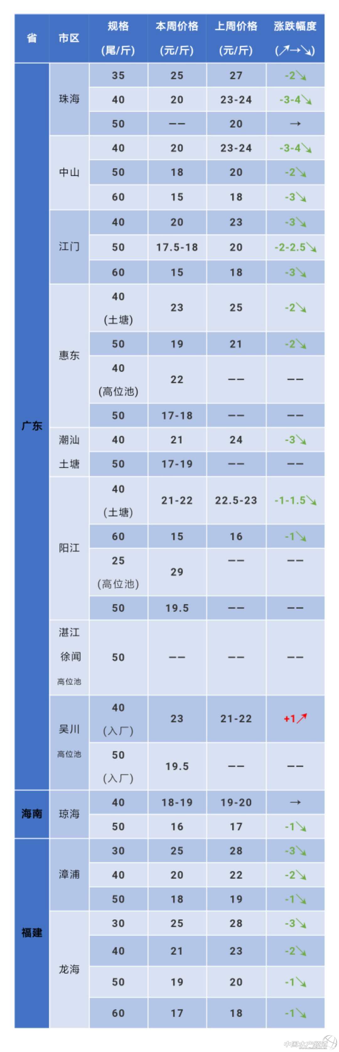 【注:蝦價行情主要取決于市場供需,具體價格以售貨渠道和品質為主要考量,本報價僅供養殖戶參考!】