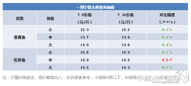 本周寧德大黃魚海面流通量維持穩(wěn)定狀態(tài),經(jīng)過前兩周一波短期上漲,魚價暫居高位。老瓜維持在14元上下,小規(guī)格魚在15.5元左右。