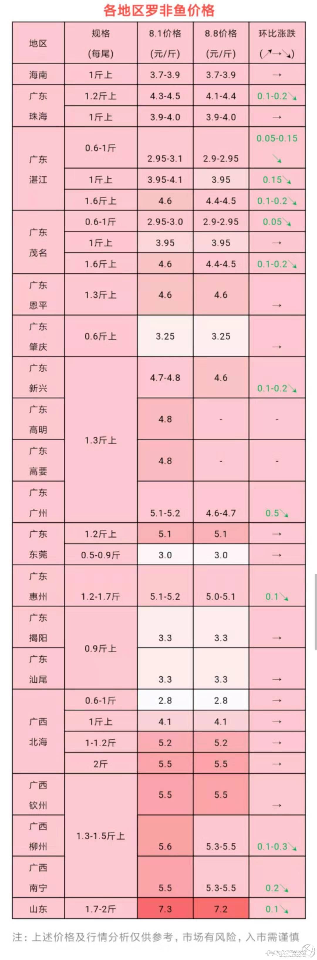 本周,各地區羅非魚行情一覽。