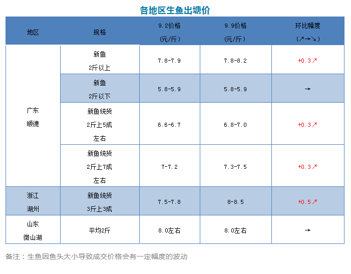小幅上漲!9月9日各地生魚最新塘頭報(bào)價(jià)