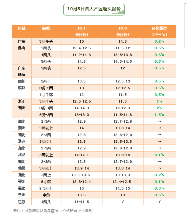廣東佛山,最高跌價達1元/斤,普遍下跌5毛錢,相對比其他主要產區,目前廣東氣溫相對比較高,同時最近氣候低壓悶熱不穩定不利于出魚,定魚積極性有所下跌,發病情節有所加重,加上外地魚逐漸上市,走外地無明顯優勢,在大環境影響下,廣東魚本周價格出現回落,目前5兩多舊魚14.5元/斤左右,4兩多13.5元/斤左右,3兩多新魚11.5-12元/斤。
