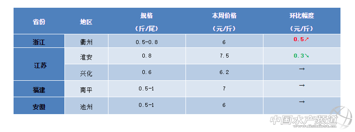 浙江:本周浙江地區(qū)鯽魚行情也是相對疲軟,局部地區(qū)塘頭價有小幅上漲。據(jù)養(yǎng)殖戶介紹,目前華東地區(qū)鯽魚已經(jīng)過了溫水魚階段,大批新魚等待上市,鯽魚行情比較爛市。目前,衢州地區(qū)0.6-0.8斤的鯽魚塘頭價在6元/斤,雖然較上周有一定的上浮,但是目前走量并不大。