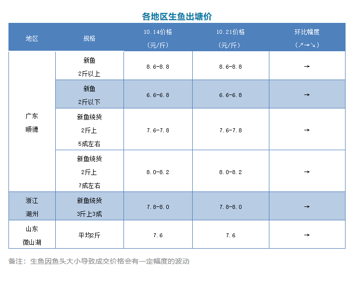 基本持平!10月21日各地生魚最新塘頭報價