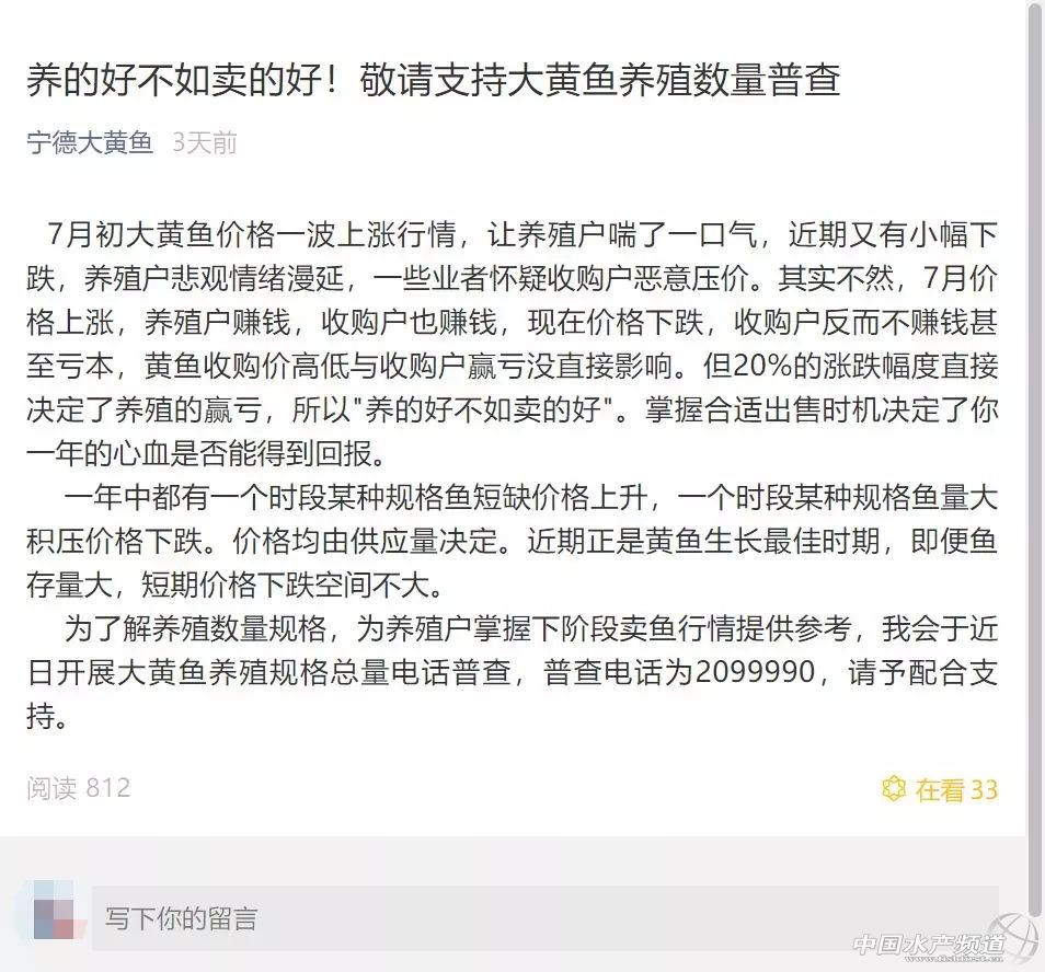 本次協會進行存魚量普查,或許能夠清晰梳理出未來大黃魚供需關系的趨勢。養得好不如賣得好,每一條魚都在最高價賣出并不現實,需要根據公布的信息和自身的判斷,合理出魚,在整體行情低迷的時候及時止損。
