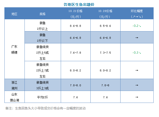 小幅下跌!10月28日各地生魚最新塘頭報價