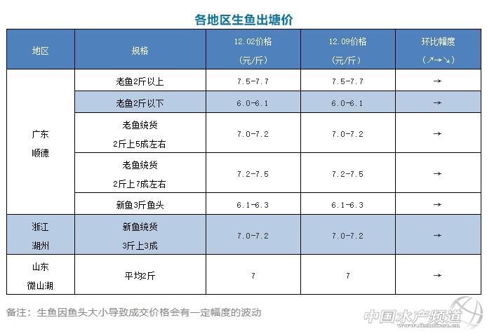 保持穩定!12月10日各地生魚最新塘頭報價