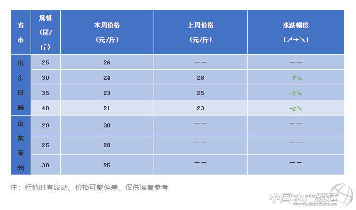 山東:日照30條24元/斤,35條23元/斤,40條21元/斤。山東整體貨源有限,日照地區本周蝦價稍有回落,萊州地區養殖戶表示當地已經只剩下幾戶沒賣蝦,目前價格還算理想。