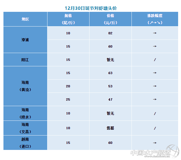 2、斑節(jié)對蝦價格平穩(wěn),維持上周價格