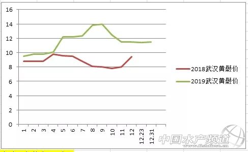 2018-2019年湖北武漢3兩上黃顙魚成品魚價格走勢