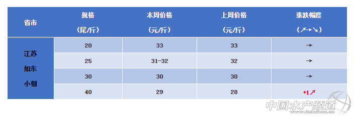 江蘇:如東小棚20條33元/斤,30條30元/斤,40條29元/斤。本周如東地區(qū)蝦價(jià)維持穩(wěn)定,養(yǎng)殖戶表示近期大家惜售心理很強(qiáng),基本上很少賣蝦的,因此價(jià)格就停漲了,大家都想等著春節(jié)高價(jià)再出售。