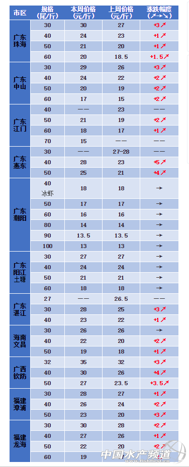 【關(guān)鍵字】:對(duì)蝦 塘頭價(jià) 市場行情 水產(chǎn)養(yǎng)殖