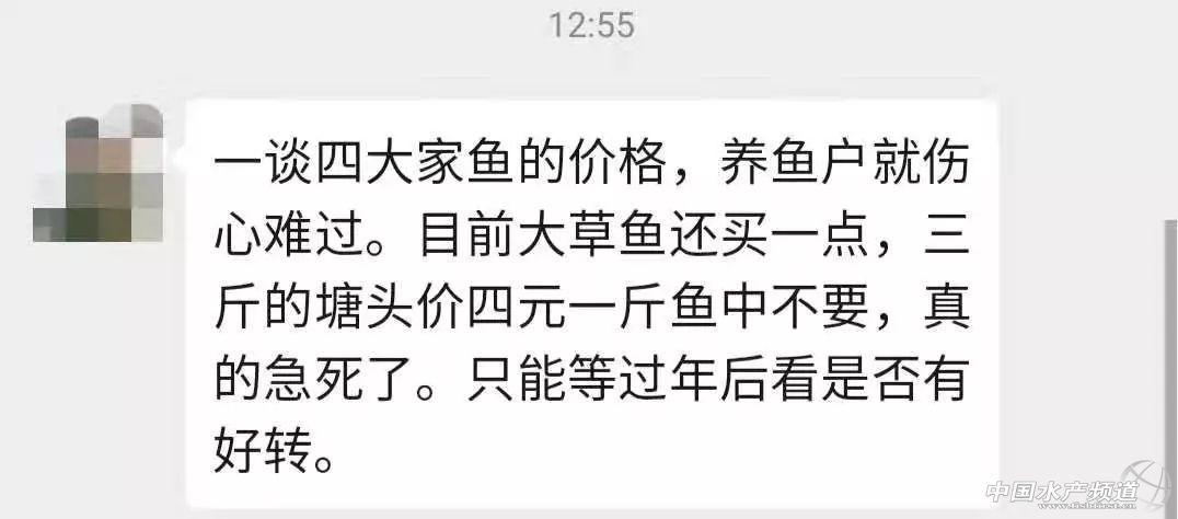據(jù)養(yǎng)殖戶介紹,最近廣東江門地區(qū)的草魚爛市,3斤的草魚塘頭賣4.6元/斤,下滑0.2元/斤。目前肇慶地區(qū)7斤的草魚塘頭只賣到5.4元/斤,養(yǎng)殖戶表示一斤魚要虧3塊錢,已經(jīng)準備放血過年,再也不養(yǎng)草魚了。最近韶關地區(qū)淡水魚非常爛市,有流通商前天拉了一車4斤的花鰱其中三分之一都是4元/斤賣掉的,3斤多的草魚經(jīng)常都是賣3-4元/斤。