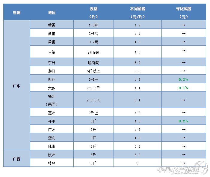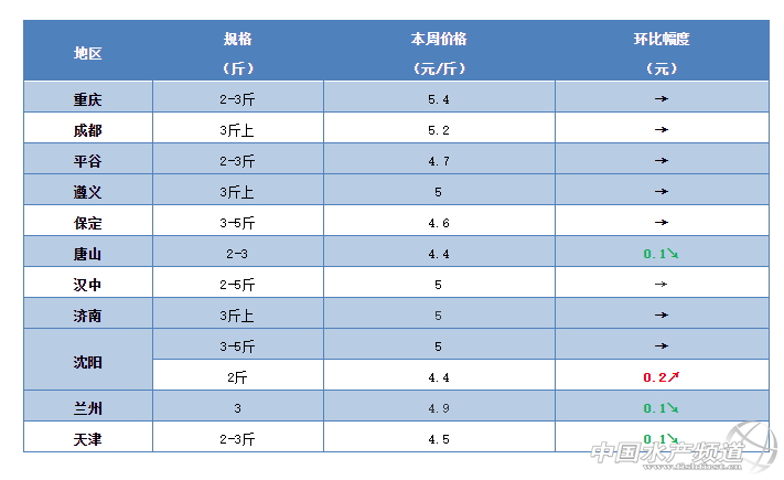 華北地區(qū):本周華北地區(qū)的淡水魚整體行情整體呈現(xiàn)下滑趨勢,草魚塘頭價也是再次出現(xiàn)小幅下滑。有河北唐山地區(qū)養(yǎng)殖戶昨天剛剛賣的魚,8兩的鯽魚賣5.8元/斤,鯉魚賣3.9元/斤,白鰱賣1.8元/斤,花鰱賣3.8元/斤,目前2斤多的草魚賣4元/斤,3斤多的草魚塘頭賣最高不超過4.4元/斤,養(yǎng)殖戶表示賠大了。