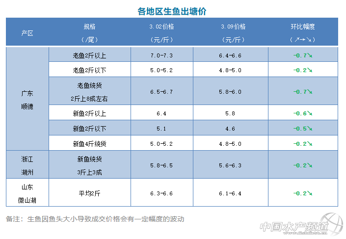 2020年3月9日生魚一周塘頭價格行情播報