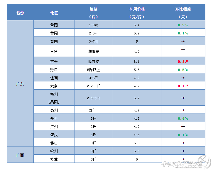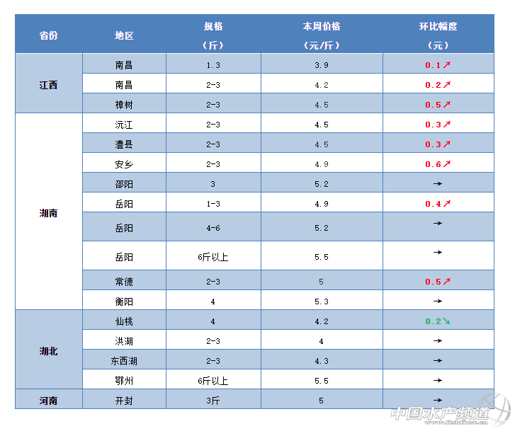 華北地區:本周華北地區的草魚塘頭價繼續保持穩定,暫時沒有出現明顯波動。從養殖戶了解到,目前河北唐山、天津寶坻等地區3斤的草魚繼續維持在4.7元/斤。