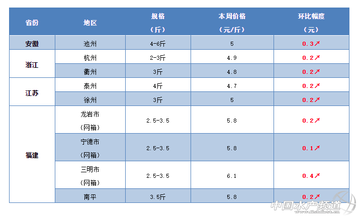 福建:本周福建地區的草魚整體行情開始好轉,多地草魚流通明顯加快,多地塘頭價再次上漲。從養殖戶了解到,目前閩江地區3斤的草魚塘頭價已賣到6.1元/斤,相比上周最高上漲0.3元/斤,養殖戶表示目前草魚比較好賣。目前三明地區3斤的草魚賣5.8元/斤,3.2斤以上的賣6.1元/斤,較之前繼續有小幅上漲。