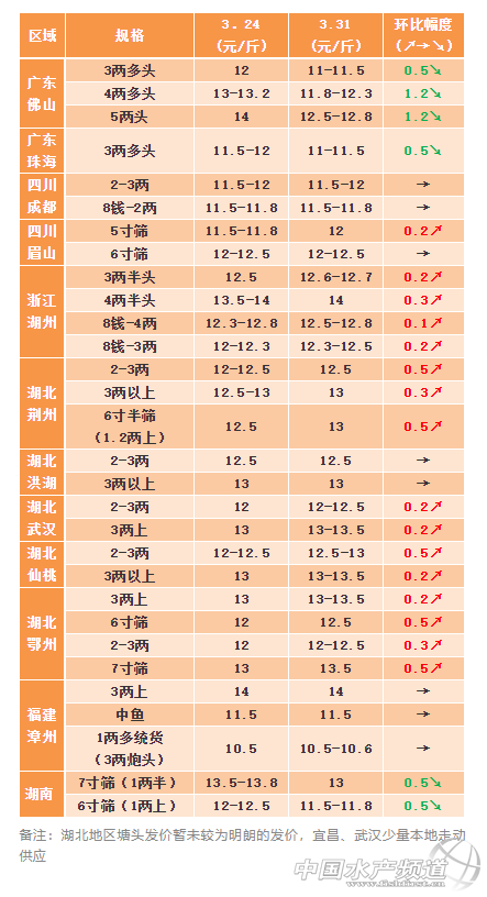 備注:湖北地區(qū)塘頭發(fā)價暫未較為明朗的發(fā)價,宜昌、武漢少量本地走動供應(yīng)