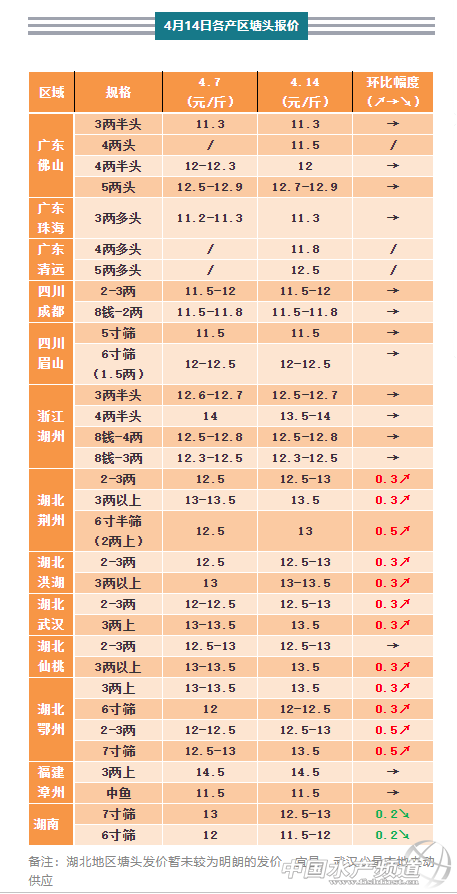 備注:湖北地區塘頭發價暫未較為明朗的發價,宜昌、武漢少量本地走動供應