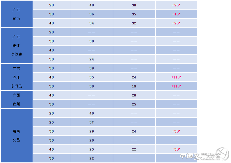 中國水產頻道原創報道,本周三,國內蝦價經過瘋狂漲價之后逐漸恢復穩定,主要原因是兩廣成品蝦存塘量有限,能賣的蝦都幾乎已經被訂走,養殖戶和流通商之間的博弈暫時告一段落。目前,成品蝦存塘量較大的應該是海南地區,進入4月以來,海南島內蝦價持續穩定上漲。今天養殖戶報價(塘頭水車成交價):20條40元/斤,25條37元/斤,30頭29元/斤。整體來看,海南蝦價上漲勢頭還是挺足的,尤其是現在據養殖戶透露翁田、文昌一帶有蝦的塘也不多了,不少養殖戶已經開始惜售,等待五一的好行情。