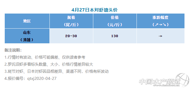 山東日本對蝦繼上周價格走高后,本周價格穩定于130元/斤,市場上也有傳出160元/斤的高價,但消息尚未被證實。目前,山東當地對蝦市場較為混亂,某地南美白對蝦連續兩天出現價格滑坡,總跌幅達8元/斤,當地流通商稱仍有百萬斤白蝦存塘。而日本對蝦則因市場存量少,交易流通情況特殊,價格并未受到影響。