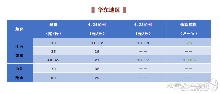 目前兩廣白蝦貨源依舊緊缺,海南地區海水、淡水成品蝦逐漸增多,福建春棚蝦預計仍有3-4成待售,但最要緊的是江蘇地區小棚蝦和浙江地區大棚蝦都要在“五一”假期開始大量上市,沖擊市場,也是往年“五一”后蝦價下滑的主要原因之一,今年跌價已經提前,對于后市有業內人士表現較消極情緒。