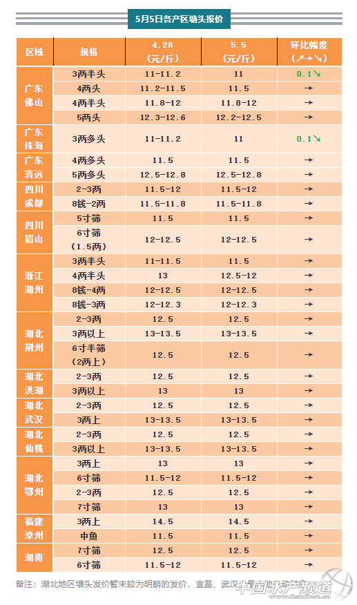 5月5日各產區塘頭報價