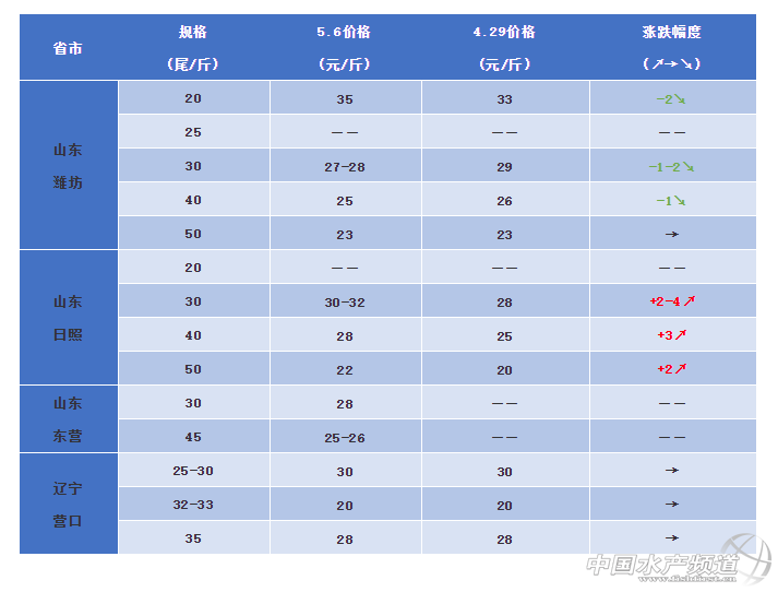 本周山東省內蝦價不同地區走勢不一。濰坊地區蝦價較上周有所滑落,當地報價員表示今年該地區蝦價并不理想,40頭的規格對比去年同期差價達到15元左右/斤,目前走量也不大。日照地區流通商則透露今天蝦價對比近期有所上漲,但他同時表示這種回漲是反常現象。由于“五一”大蝦價格被寄予厚望,但卻不如人意,部分養殖戶賣蝦意愿不高,也正因如此,該部分被滯留的大蝦在今天價格出現反漲,漲幅約在2元/斤。“大蝦漲價之后,養殖戶就開始惜售了,其實可以說是最后的瘋狂。”有業者表示到。