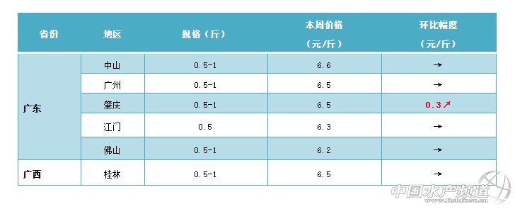 本周華南地區的鯽魚行情依然堅挺。雖然以往都有“節后瘟三天”的說法,但是今年五一之后鯽魚行情繼續保持強勁的上漲勢頭,多地塘頭價出現上漲。據了解,由于市場缺貨,本周廣東地區鯽魚行情繼續穩中有升。目前,肇慶地區半斤的鯽魚最新塘頭價6.5元/斤,上漲0.3元/斤;佛山地區8兩以上的鯽魚塘頭價最高已賣到11元/斤;中山地區半斤的鯽魚塘頭價繼續維持在6.5元/斤左右,暫時沒有出現明顯變化;前江門地區半斤的市場賣10元/斤。目前廣西桂林地區鯽魚行情繼續維持穩定,半斤的鯽魚最新塘頭價賣6.5元/斤,暫時沒有出現明顯波動。