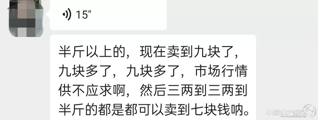 從養殖戶了解到,目前湖北武漢市場上鯽魚供不應求,半斤的鯽魚已經賣到9元/斤以上,3兩以上的都可以賣到7元/斤。目前隨州地區半斤鯽魚最新塘頭價賣6元/斤,上漲0.5元/斤;仙桃地區塘頭價也已賣到8元/斤。目前,湖南常德地區半斤的湘云鯽塘頭賣7元/斤左右,相同規格的彭澤鯽塘頭已經賣到8元/斤;長沙地區6-7兩的鯽魚賣6.5元/斤。養殖戶表示:現在常規魚價格上漲很快,養殖戶有希望了。