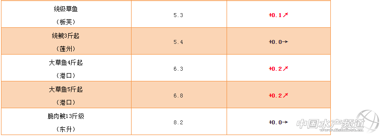 大草魚(yú):價(jià)格持續(xù)上漲,較上周上漲0.2元/斤,4斤上達(dá)到6.3元/斤;5斤上達(dá)到6.8元/斤。