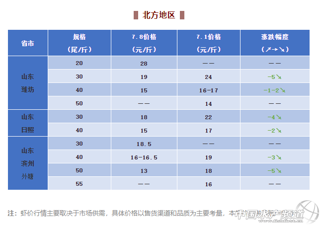 蝦價持續(xù)兩極化,本周山東跌價最慘,達(dá)到5元/斤,珠三角低谷滑行