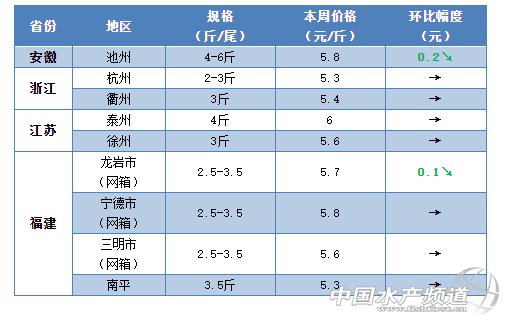 據了解,目前華南地區草魚存塘僅2成左右,市場供不應求,本周部分地區草魚塘頭價開始出現上漲。本周福建地區草魚行情下滑的勢頭終于放緩,目前大部分地區的塘頭價基本穩定在5.6-5.7元/斤。