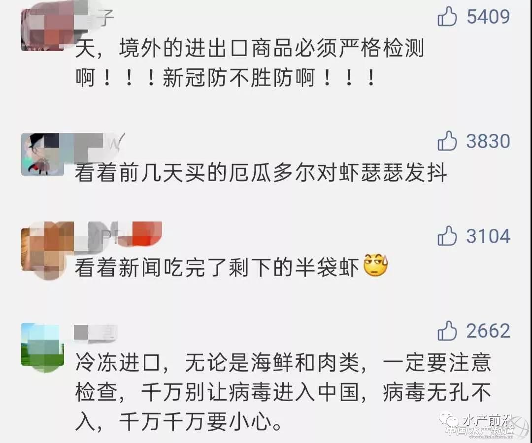 第四起:7月14日,重慶沙坪壩區(qū)檢測從厄瓜多爾進口的凍南美白蝦部分產品外包裝顯示新冠病毒核酸呈陽性。